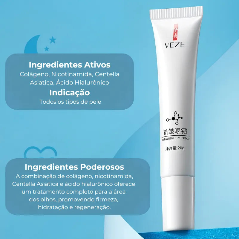 • Ingredientes Poderosos: A combinação de colágeno, nicotinamida, Centella Asiática e ácido hialur oferece um tratamento completo para a área dos olhos, promovendo firmeza, hidratação e regeneração.