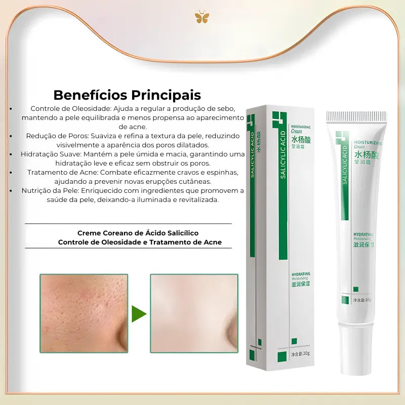 Creme Coreano de Ácido Salicílico - Controle de Oleosidade, Hidratação, Redução de Poros e Tratamento de Acne