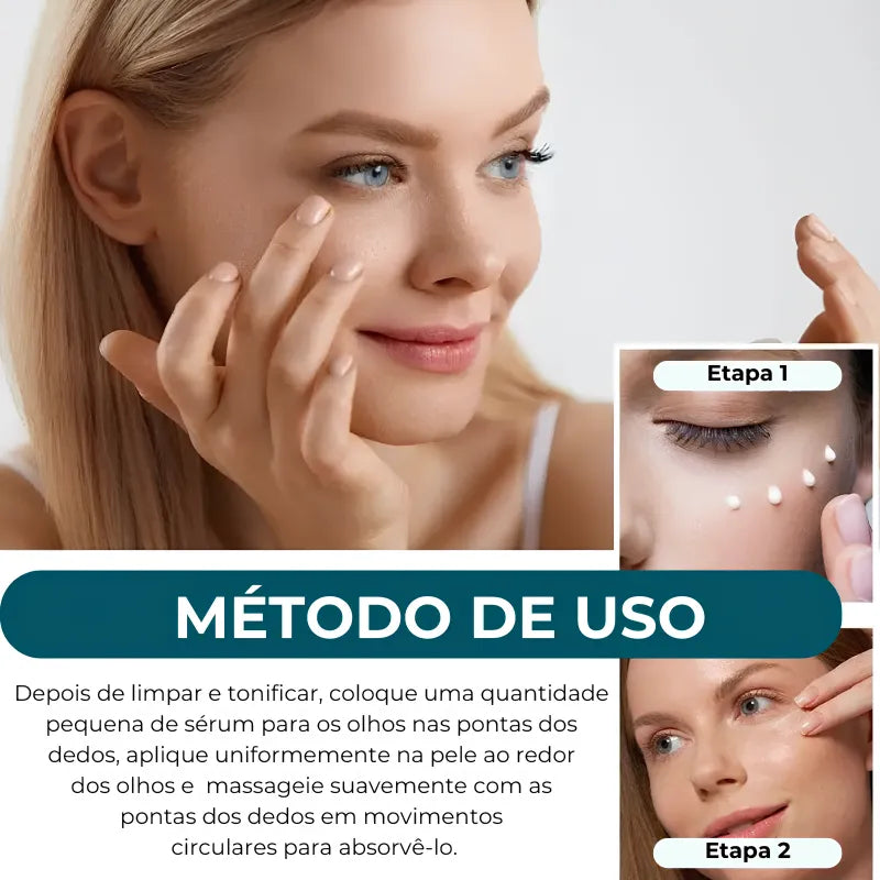 - Aplicação: Deposite pequenos pontos do sérum ao redor dos olhos.